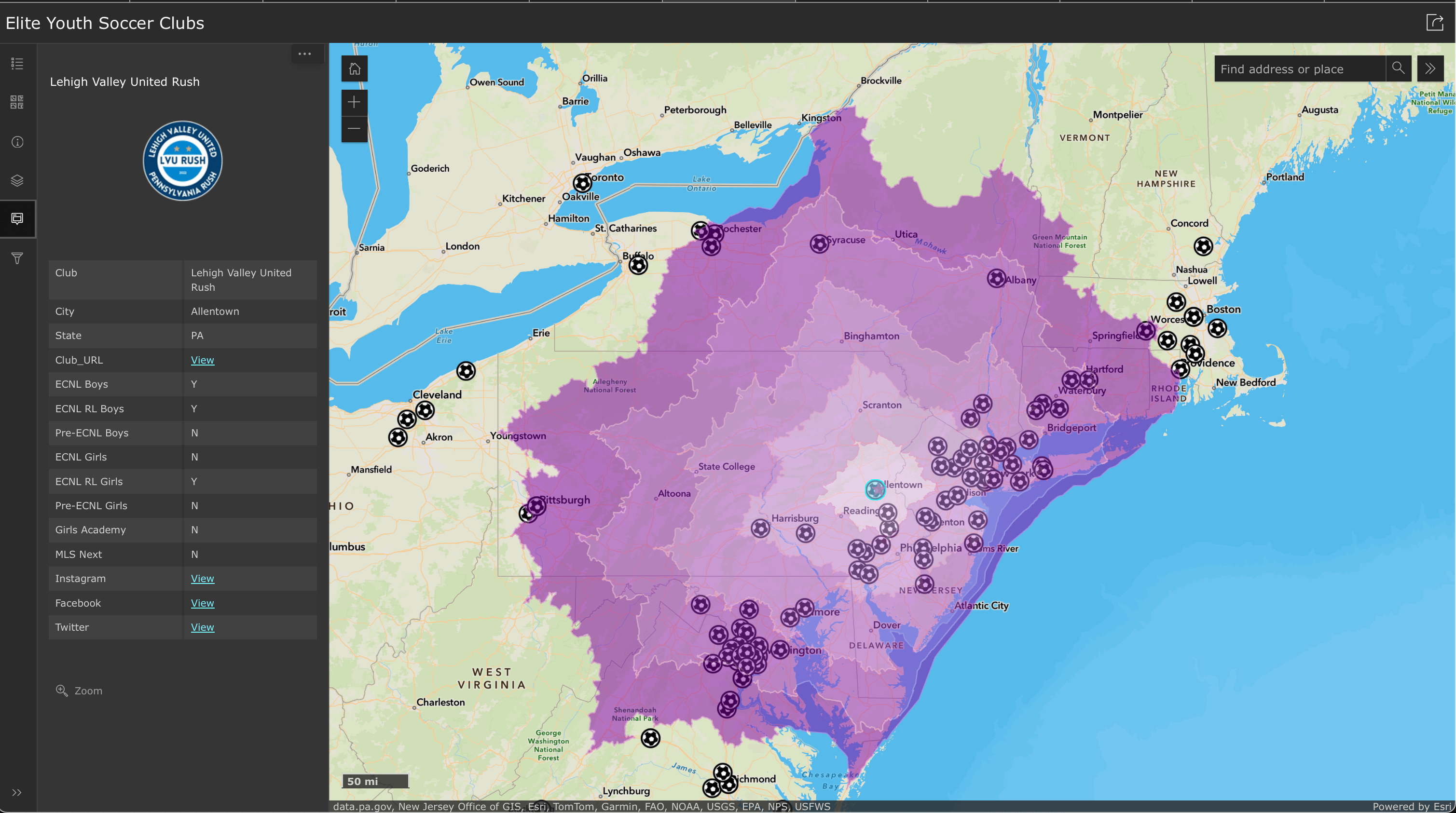 GIS Projects Youth Soccer Clubs in Eastern PA Elite Youth Soccer Clubs in the North East with Driving Distances from Allentown, PA Ski Areas in the North East with NWS Snow Predictions Share this: Click to share on Facebook (Opens in new window) Facebook Click to share on X (Opens in new window) X Like Loading...